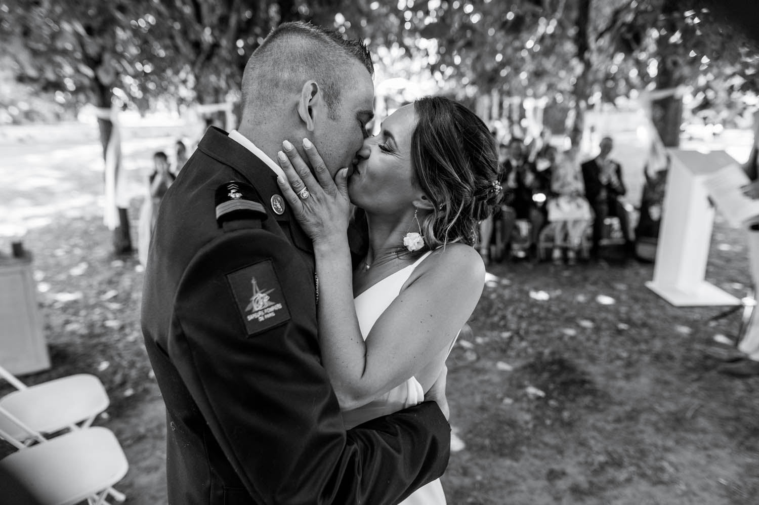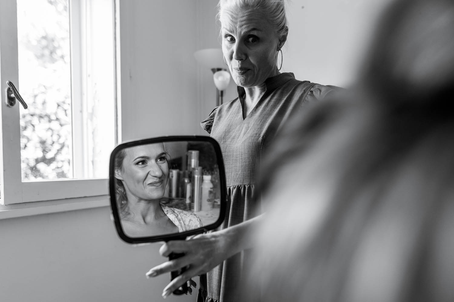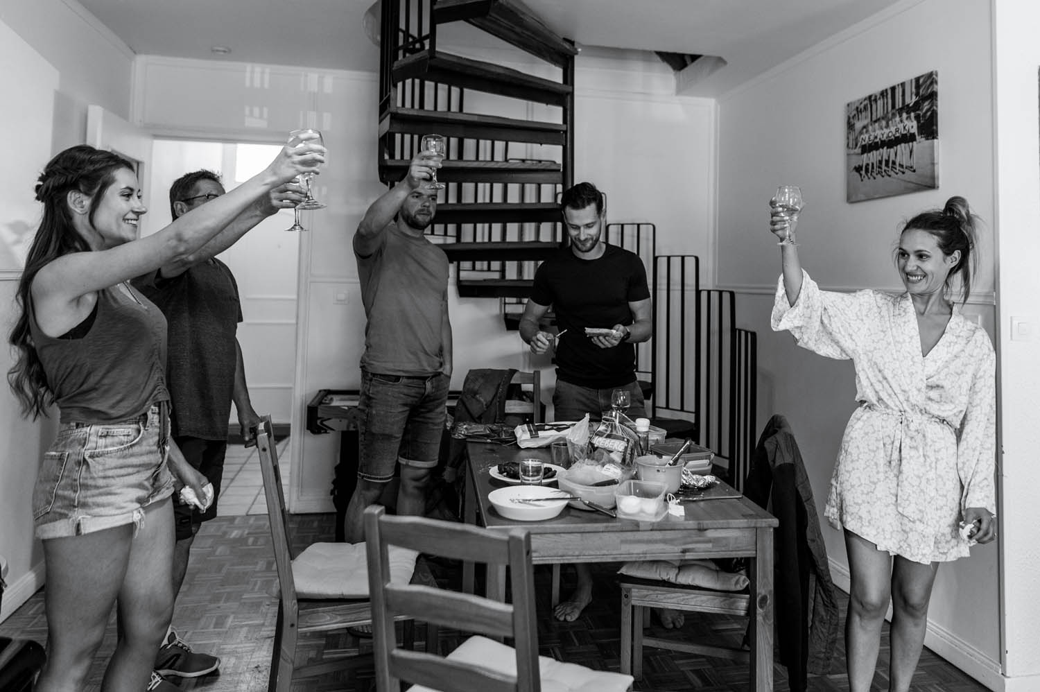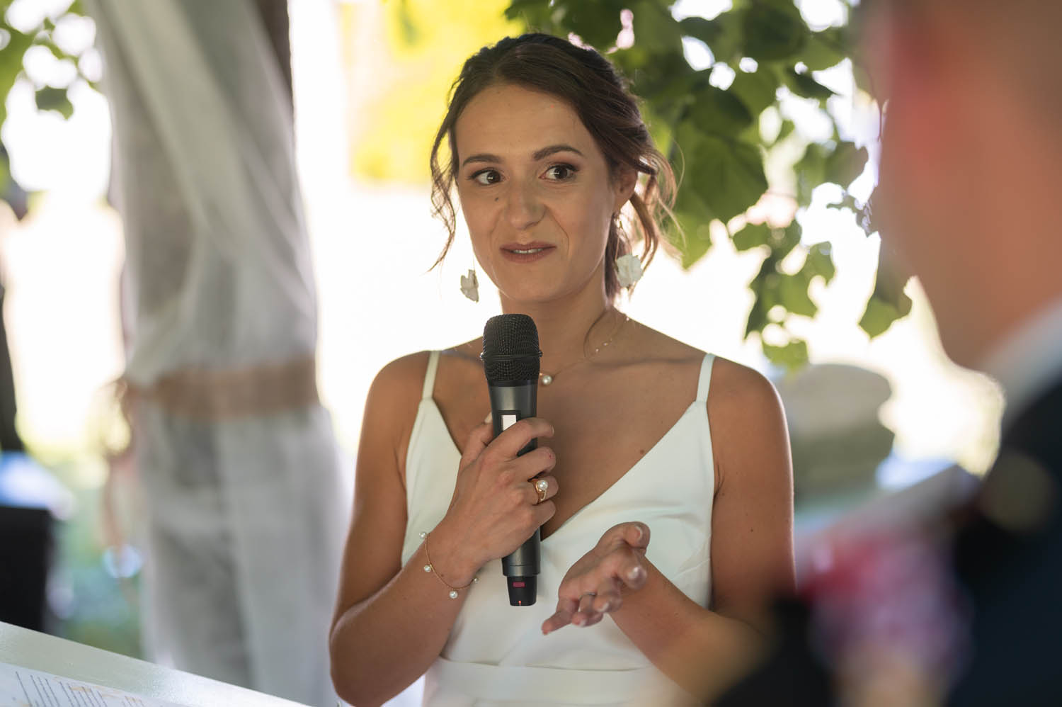 Le temps est parfait aujourd’hui, un peu plus frais que les jours précédents, mais toujours ensoleillé et agréable. Le couple a choisi le domaine de la Frossardière pour leur cérémonie de mariage, un château somptueux et prestigieux qui appartient aux Pompiers de Paris. Cedric est en effet pompier, et la cérémonie laïque sera ponctuée par une haie d’honneur de ses collègues avec leurs lances.
