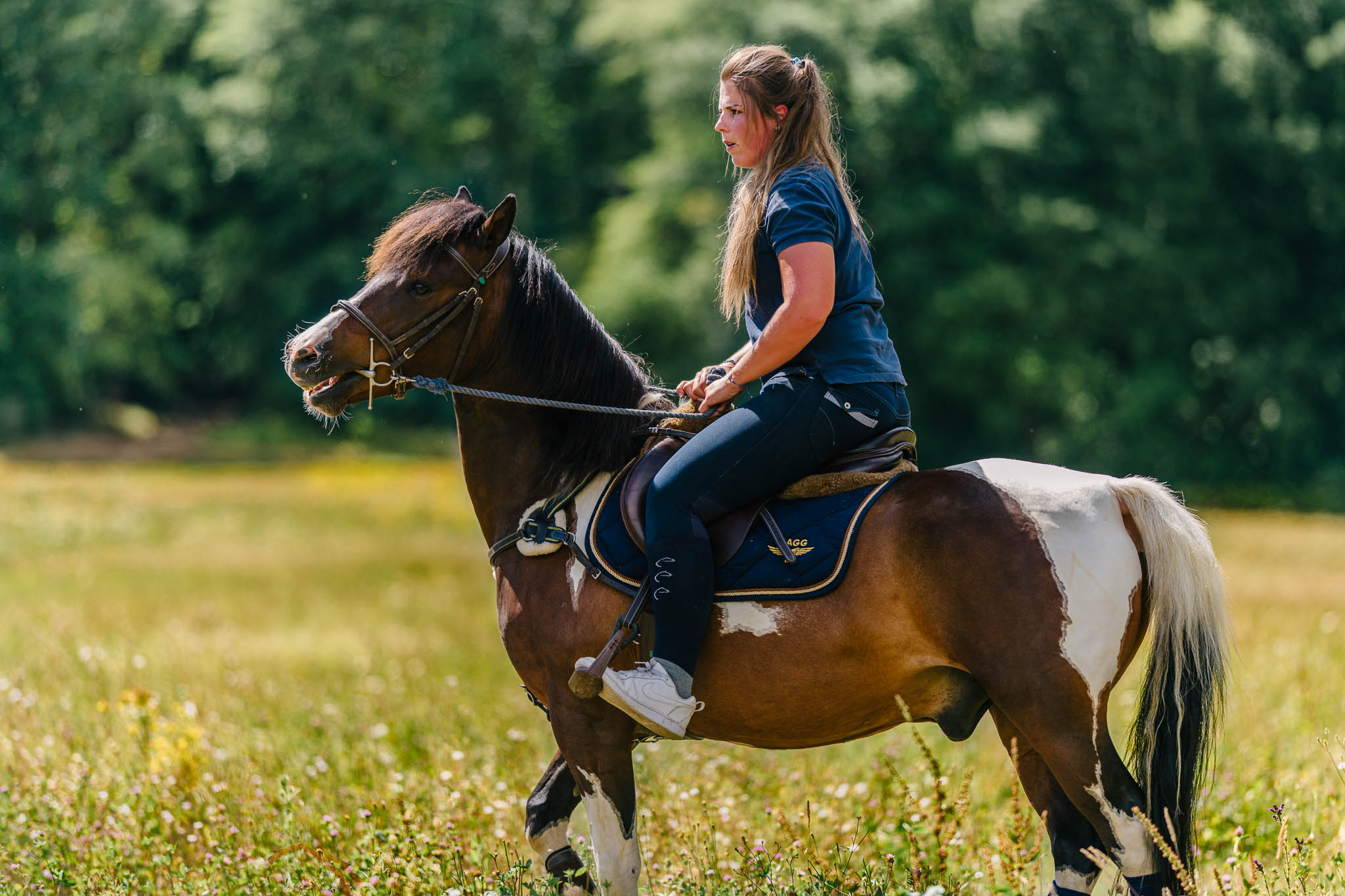 Marine pratique les concours de Pony Games avec sa ponette Imprévue. Elle est devenue propriétaire d’Elistar pour prendre la relève d’Imprévue vieillissante, mais malheureusement il s’est gravement blessé en 2019.