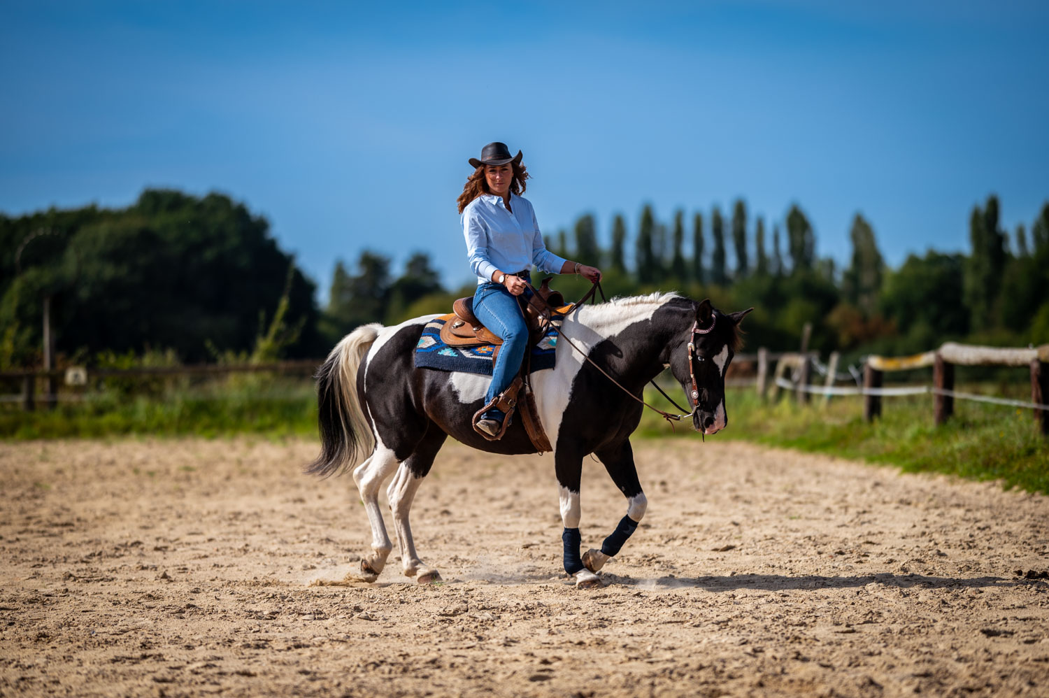 En discutant avec Sandra, j’ai appris que le choix de pratiquer l’équitation façon western était également plus confortable pour elle et sa jument. Outre les aspects esthétiques, cette pratique offre de nombreux avantages en termes de confort pour les cavaliers et les chevaux.