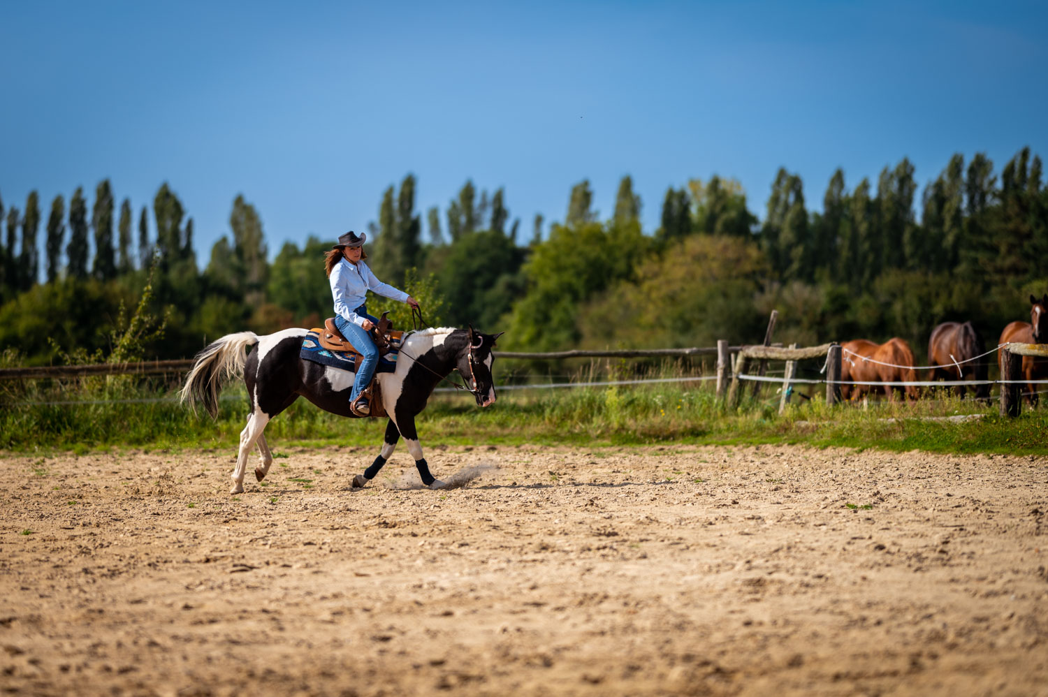 Sandra m’a également expliqué que la pratique western permettait de se rapprocher de la nature et de vivre une expérience unique en communion avec son cheval. Elle m’a parlé de randonnées de plusieurs jours à travers les forêts et les montagnes, où elle et Valentine ont pu explorer des endroits magnifiques et admirer des vues à couper le souffle.